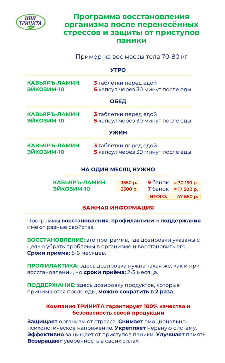 Состав набора на 1 месяц