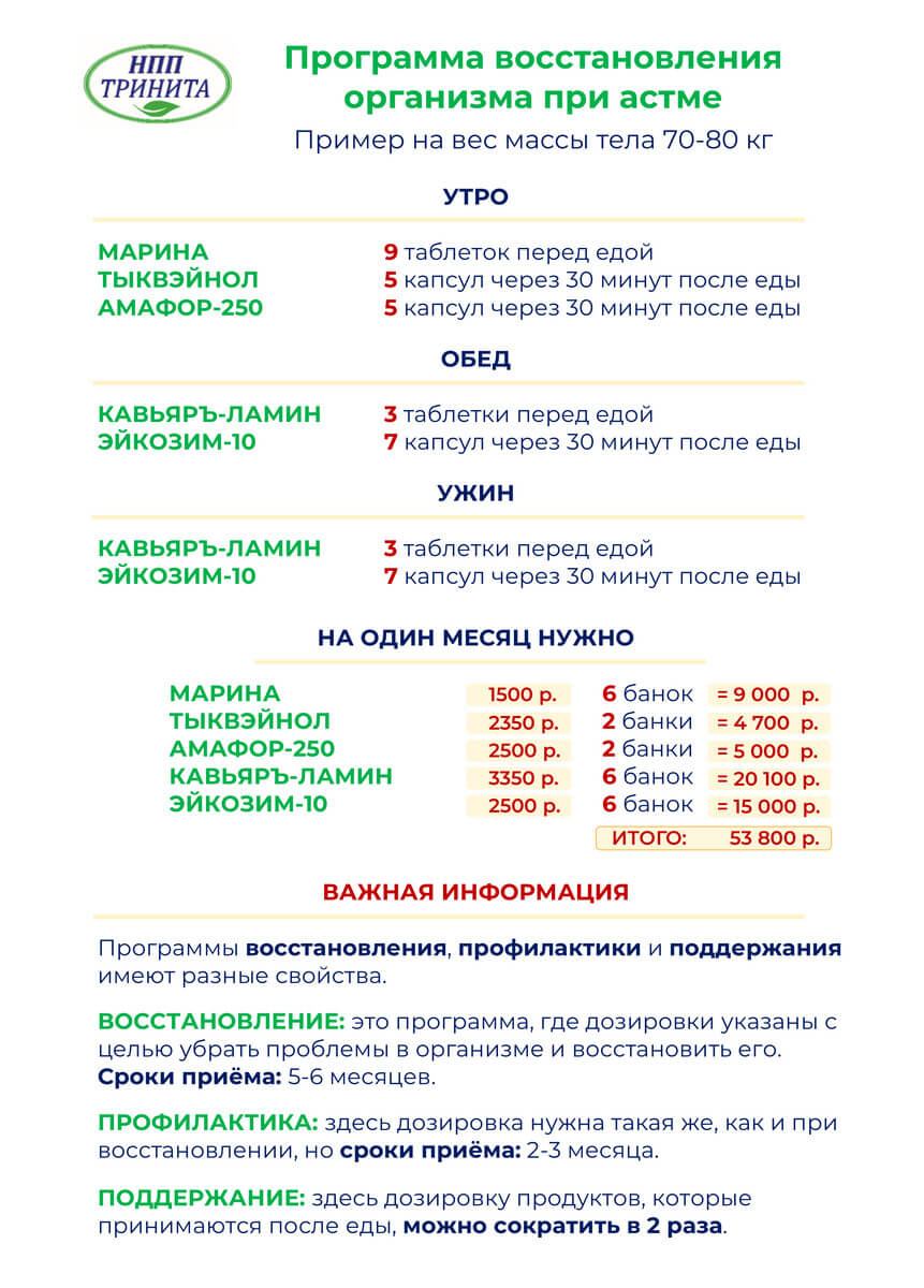Состав набора на 1 месяц
