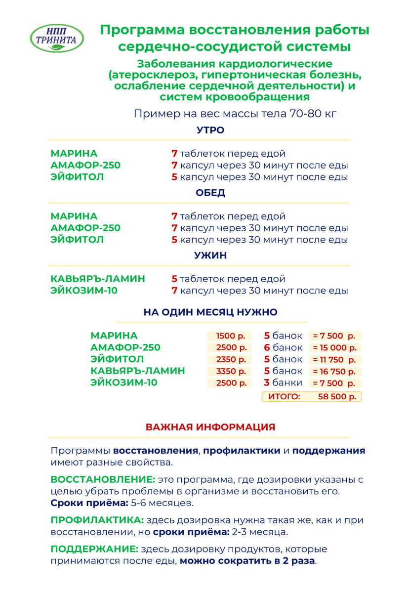 Состав набора на 1 месяц