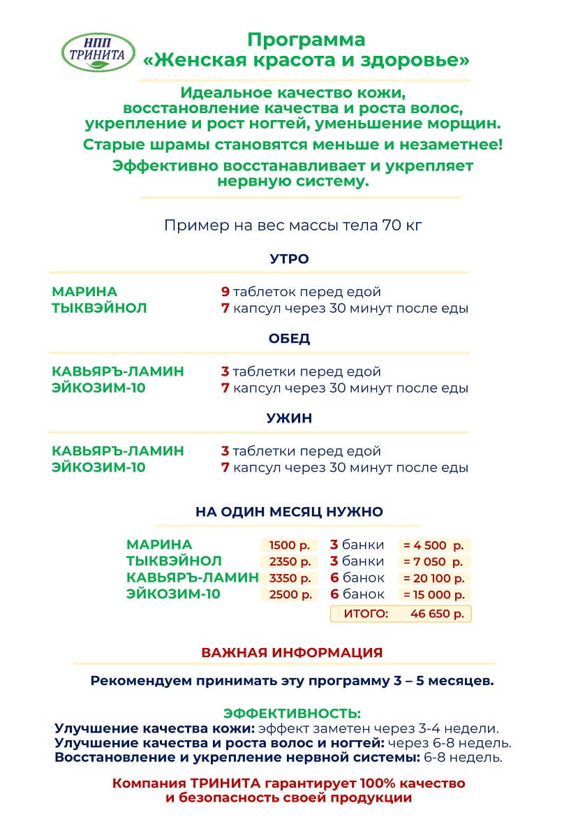 Состав набора на 1 месяц